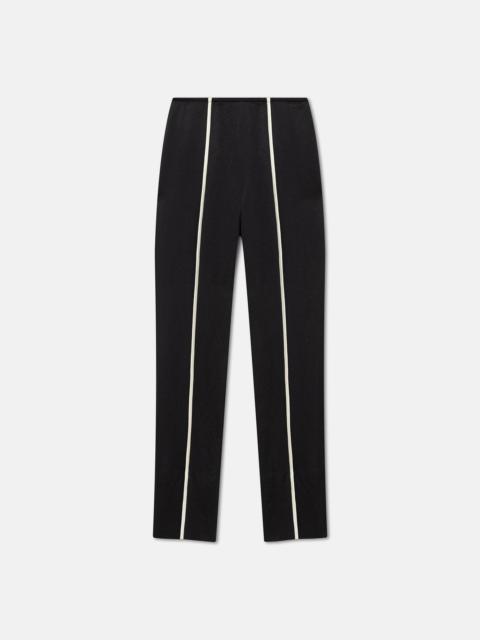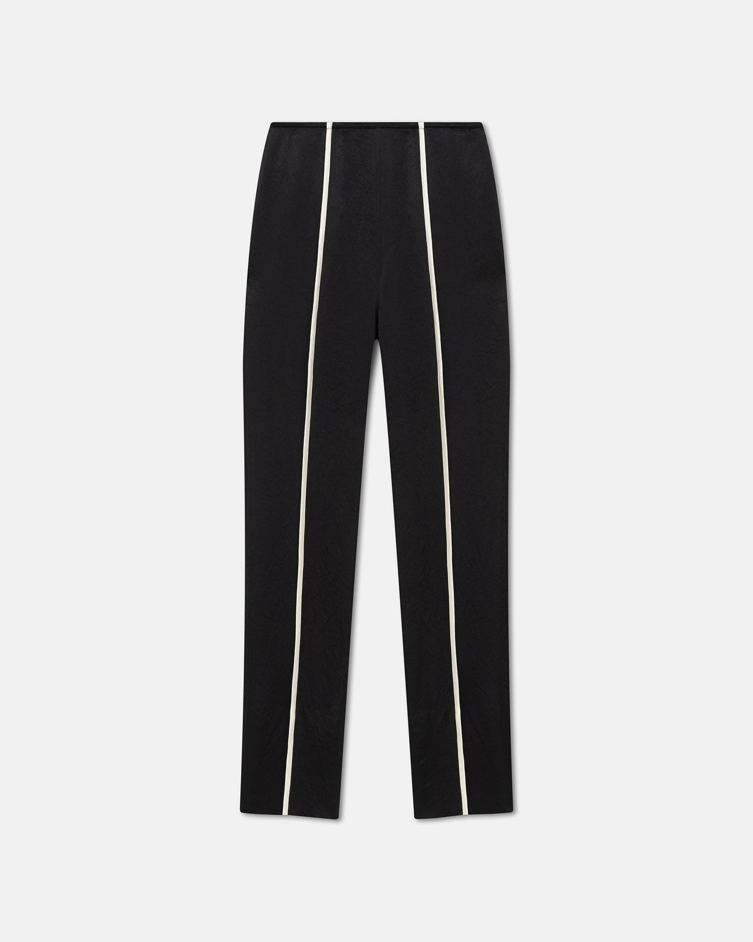 The Ratana pants sit high on the waist before falling in a slim-leg silhouette – the contrasting ecru binding accentuates the streamlined fit. They are made from black crinkled satin and finished with slits at the ankle. Fit Tailored to be fitting against the body. Model is 175 cm (5'9'') and wears a size S. Materials and Care Shell: 100% Acetate Machine wash warm (30°), do not bleach, do not tumble dry, do not iron, gentle dry clean any solvent except trichloroethylene handle with care and wash less to ensure garment lifespan. repair or resell to support circular fashion.naia™ is a cellulosic fiber made from sustainably sourced wood pulp. it’s produced in a safe, closed-loop process where solvents are recycled back into the system for reuse.