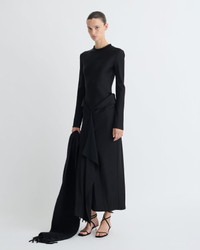 The Diah Dress embodies the Fall-Winter 25 collection’s spirit of transformation and quiet strength. Crafted from crisp satin, this crew neck long-sleeved dress with hem detail showcases a regular fit silhouette that merges comfort with refinement. In a rich Black tone, designed to evolve with the wearer through seasons of change, while reflecting Nanushka’s commitment to timeless, luxurious design. Fit Standard fit, matches usual sizing Model is 180 cm (5'11'') and wears a size S. Materials and Care Shell: 82% TRIACETATE 18% POLYESTER Machine wash warm (30°) Do not bleach Do not tumble dry Iron low heat (110°) Dry clean any solvent except trichloroethylene
