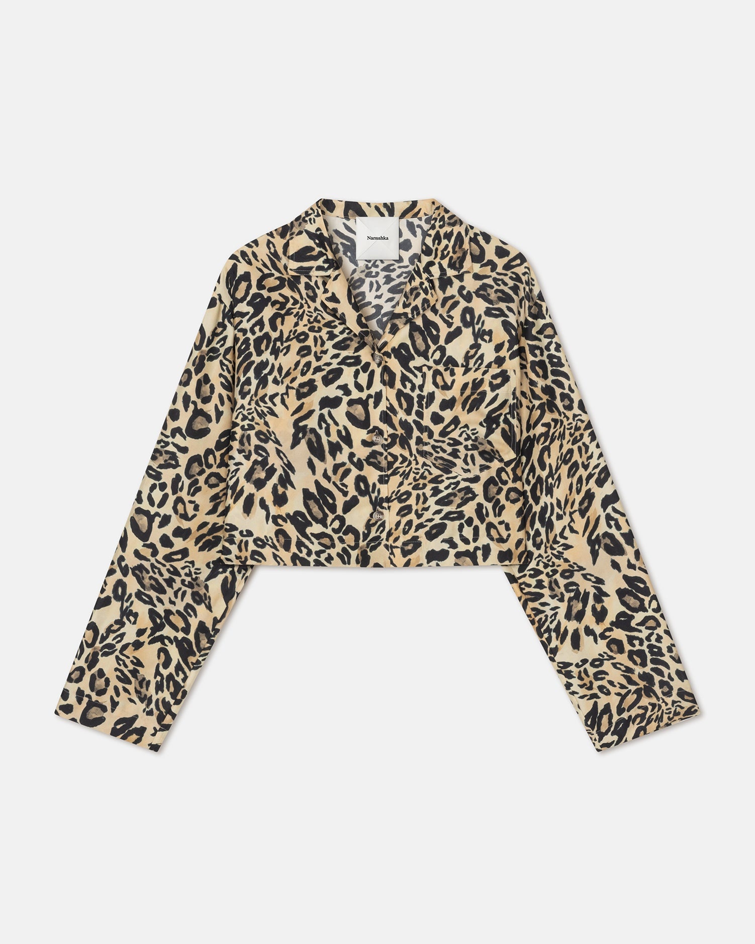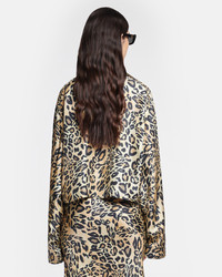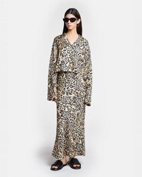 Inspired by classic pyjama silhouettes, the Vally shirt has a cropped, oversized fit. Decorated with 90s-inspired leopard spots, it is designed to be worn with the matching shorts for easy elegance. Fit Oversized: Designed to be intentionally oversized. Take your usual size for the oversized effect, or take a size down for a more regular fit. Cropped pyjama shirt Long-sleeved Twill silk material Collared with front button closure Patch pocket on the chest Model is 177 cm (5'9'') and wears a size S. Materials and Care Shell: 100% Silk Do not wash, do not bleach, do not tumble dry, do not iron, dry clean any solvent except trichloroethylene.handle with care to ensure garment lifespan. repair or resell to support circular fashion.