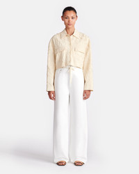 We always focus on fabric with each garment we make. The Coreen shirt is cut from sculpted glass poplin, a subtly textured material that elevates the minimalist shape. It has a cropped silhouette and comes in a neutral oat tone. Fit Standard fit, matches usual sizing. Model is 175 cm (5'9'') and wears a size S Materials and Care Shell: Shell: 74% Viscose 26% Polyester Back: 100% Polyester Do not wash, do not bleach, do not tumble dry, iron low heat (110°), dry clean any solvent except trichloroethylene, do not wring handle with care to ensure garment lifespan. repair or resell to support circular fashion.