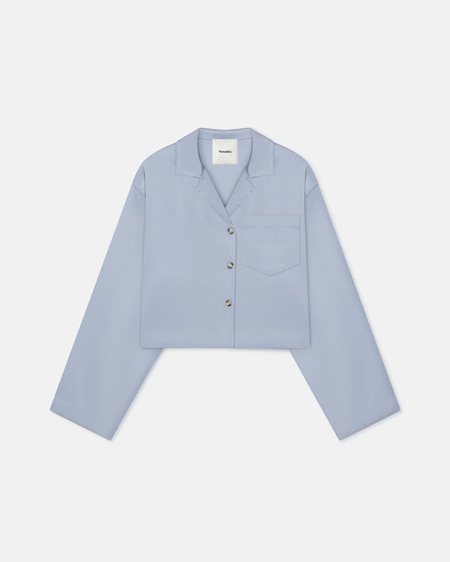 Inspired by classic pyjama silhouettes, the Vally shirt has a cropped, oversized fit. It comes in a beautiful ice-blue tone, designed to be worn with the matching Dylla shorts for easy elegance. Fit Intentionally designed for an oversized look. Materials and Care Shell: 86% Triacetate 14% Polyester Machine wash warm (30°), do not bleach, do not tumble dry, iron low heat (110°), dry clean any solvent except trichloroethylene. Handle with care and wash less to ensure garment lifespan. Repair or resell to support circular fashion.