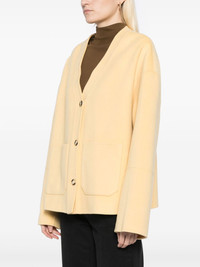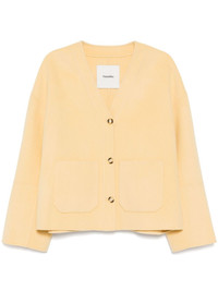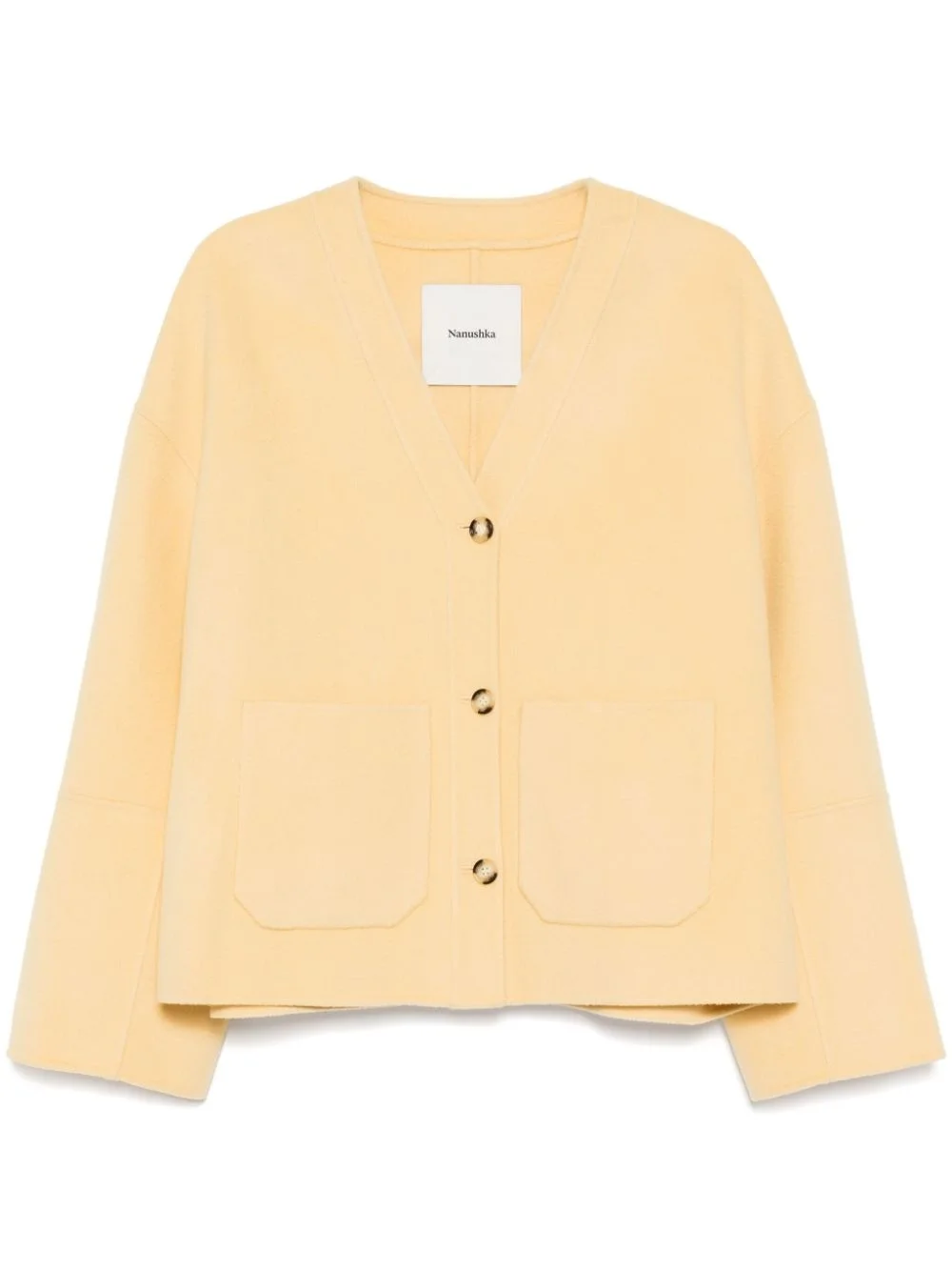 Dodie jacket Highlights - Moon beam - Wool blend - V-neck - Drop shoulder - Long sleeves - Front button placket - Two front patch pockets - High-low hem Imported Composition Wool 90%, Silk 10% SIZE & FIT Model measurements Height 5 ft 9 in(1.76 m) Bust/Chest 31.1 in(79 cm) Hips 35.03 in(89 cm) Waist 24.4 in(62 cm) FittingInformation Designed to be unstructured, offering a loose fit throughout Made from a midweight non-stretch fabric