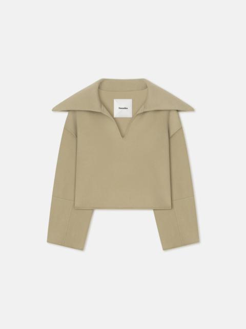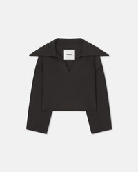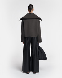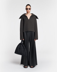 The Maxe sweater is crafted from a double-faced blend of wool and silk, so it is extremely warm and soft to the touch. It has a loose fit accentuated by a wide open shawl collar. Fit Regular fit, true to size. Pilgrim collar pullover Deep neckline Double wool silk material Regular fit Dropped shoulder Model is 175 cm (5'9'') and wears a size S. Materials and Care Shell: 90% Wool 10% Silk Do not wash, do not bleach, do not tumble dry, do not iron, gentle dry clean any solvent except trichloroethylene.handle with care to ensure garment lifespan. repair or resell to support circular fashion.