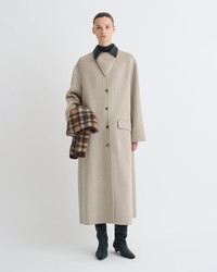 Nanushka’s Rowina Coat is cut from grey double wool and contrasting regenerated leather to create an oversized yet elegant and feminite coat. Fit Intentionally designed for an oversized look. Model is 180 cm (5'11'') and wears a size S. Materials and Care Shell 1: 90% WOOL 10% SILK Shell 2: BASE: 100% POLYESTER COATING: POLYURETHANE BACK:BONDED LEATHER Middle: 80% POLYESTER20% POLYAMIDE Lining: 100% VISCOSE Do not wash Do not bleach Do not tumble dry Do not iron Gentle Dry clean any solvent except Trichloroethylene