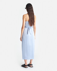 Silhouettes with draped elegance are one of our defining signifiers. Made from our liquid-like slip satin, the Sayan dress falls beautifully from thin spaghetti straps to a gathered waist and midi-length silhouette. The ice-blue tone is fresh without compromising on versatility. Fit Standard fit, matches usual sizing. Materials and Care Shell: 86% Triacetate 14% Polyester Machine wash warm (30°), do not bleach, do not tumble dry, iron low heat (110°), dry clean any solvent except trichloroethylene. Handle with care and wash less to ensure garment lifespan. Repair or resell to support circular fashion.