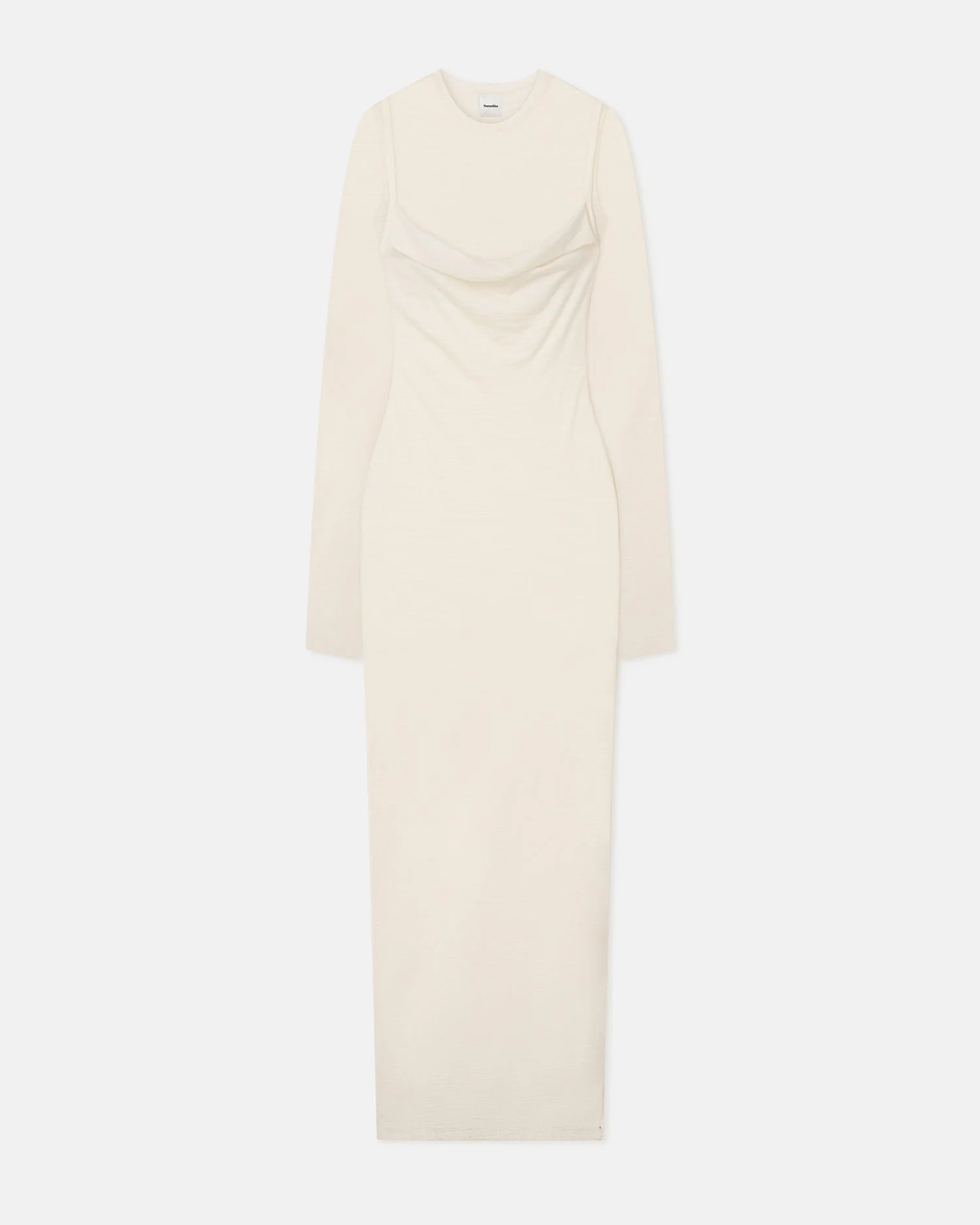 The Linora dress embodies our sentiment of ‘stillness amidst chaos,’ an invitation to pause and appreciate simplicity. Made from soft creme wool jersey, it has a close fit with an elegant draped neckline. Fit Tailored to be fitting against the body. Materials and Care Shell: 100% Wool Hand wash cold, do not bleach, do not tumble dry, iron low heat (110°), do not dry clean, do not wring, dry flat Handle with care and wash less to ensure garment lifespan. Repair or resell to support circular fashion.