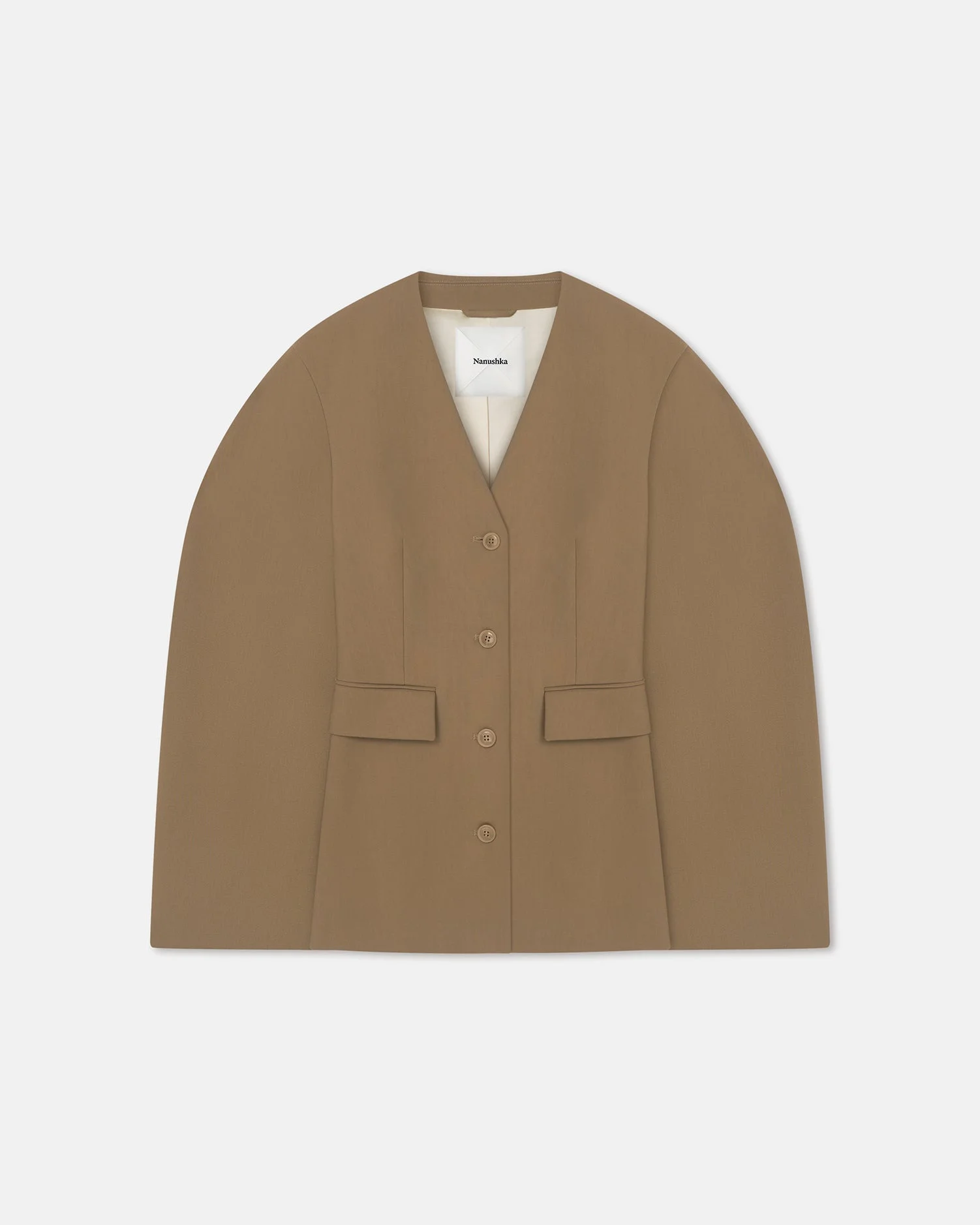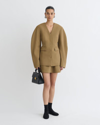 Nanushka tailoring is all about ease and elegance. The Kaori blazer feels fresh and contemporary thanks to the collarless design, elongated silhouette and rounded sleeves. In rich brown, it’s designed to be worn with the coordinating tailored pants. Fit Intentionally designed for an oversized look. Materials and Care Shell: 96% Viscose 4% Elastane Lining: 100% Viscose Do not wash, do not bleach, do not tumble dry, iron low heat (110°), gentle dry clean any solvent except trichloroethylene Handle with care to ensure garment lifespan. Repair or resell to support circular fashion.