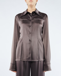 The Elu shirt is crafted from our signature slip satin to bring out the richness of the coffee-bean tone. It has an elegantly fluid drape and welt pockets at the chest for a crisply tailored feel. Shell: 83% Responsibly-sourced Triacetate 17% polyester; Lining: 56% Acetate 44% Viscose