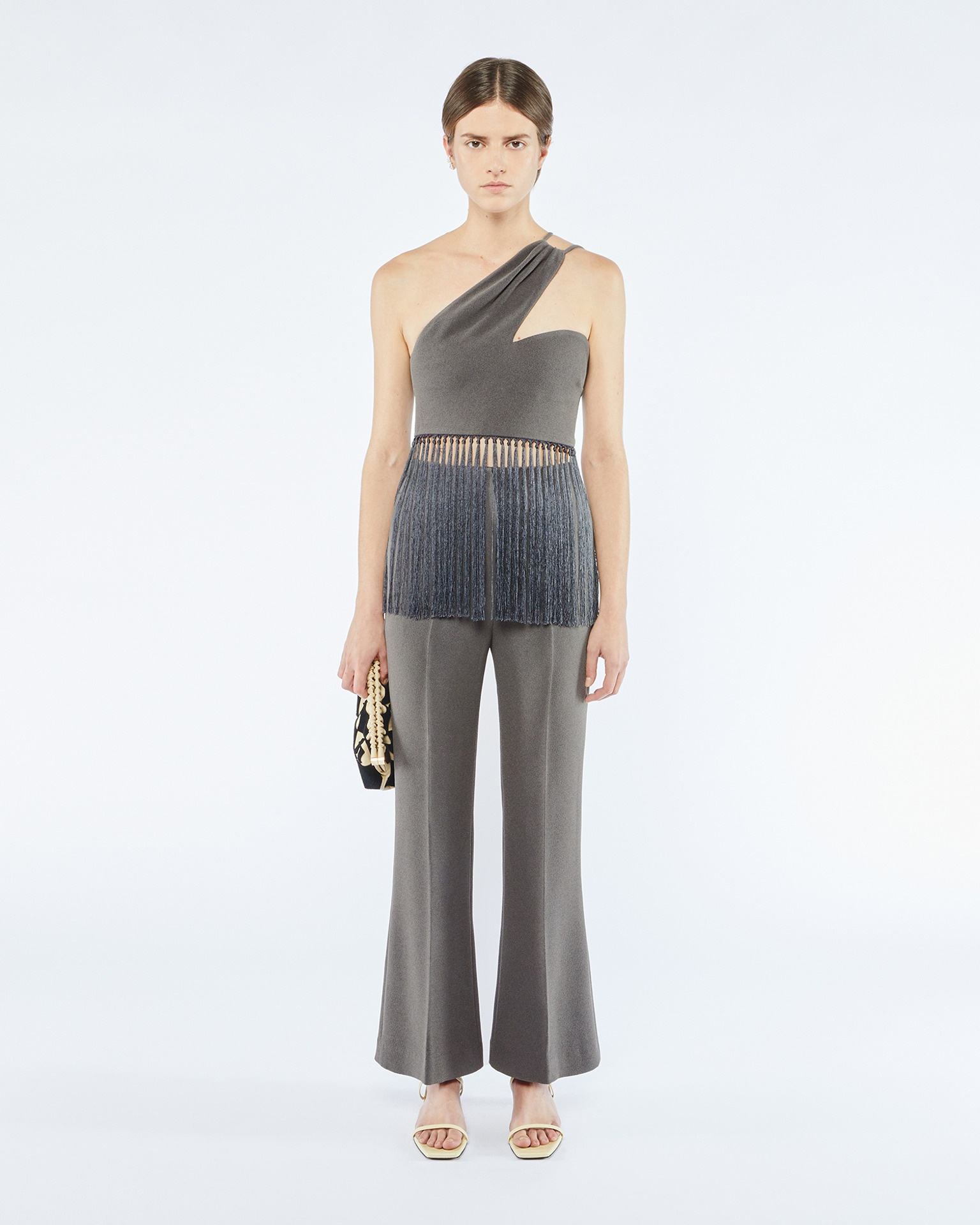 Decorated with fringing along the hem, a recurring element in Resort 2023, the Emilou top also features a halterneck design across one shoulder. Shell 50% ACETATE; Shell 50% RECYCLED POLYESTER