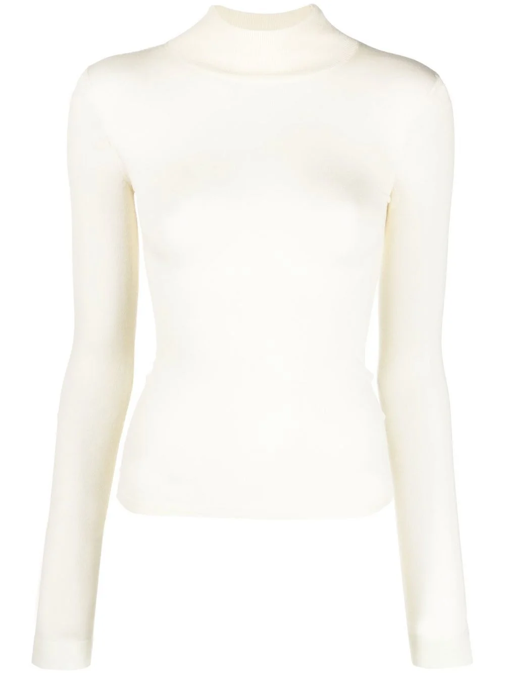 fine-knit high-neck jumper The extremely fine knit of this Nanushka jumper lends it a see-through design, elevating the silhouette with the brand's modern sensibility. The high-neck design is presented in a cream-white hue. Highlights - Cream white - Merino wool - Fine knit - Semi-sheer construction - High neck - Long sleeves - Straight hem Imported Composition Merino 100% SIZE & FIT Model measurements Height 5 ft 11 in(1.8 m) Bust/Chest 32.67 in(83 cm) Hips 36.22 in(92 cm) Waist 24.4 in(62 cm) FittingInformation This piece fits true to size. We recommend you get your regular size Cut for a close fit Made with a mid-weight fabric Washing instructions Hand Wash