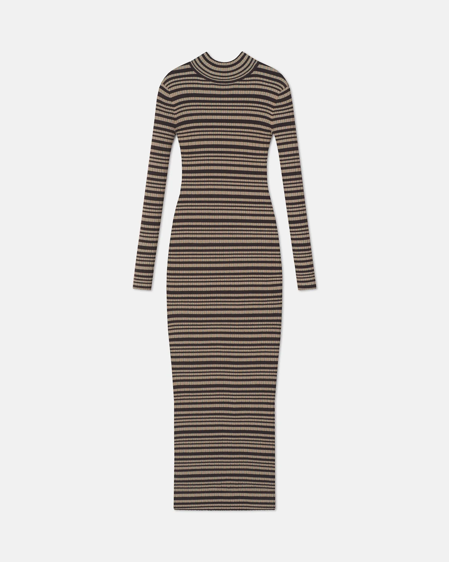 Nanushka’s Mirell Dress echoes the silhouette of the the Arella top but in a longline form. Crafted from fine merino rib, this knitted, turtleneck maxi dress features a neck tie and fitted sleeves. Fit Standard fit, matches usual sizing Model is 175 cm (5'9") and wears a size S. Materials and Care Shell: 95% WOOL, 4% NYLON, 1% SPANDEX Hand wash cold, Do not bleach, Do not tumble dry, Iron low heat (110°), Dry clean any solvent except trichloroethylene, Dry flat