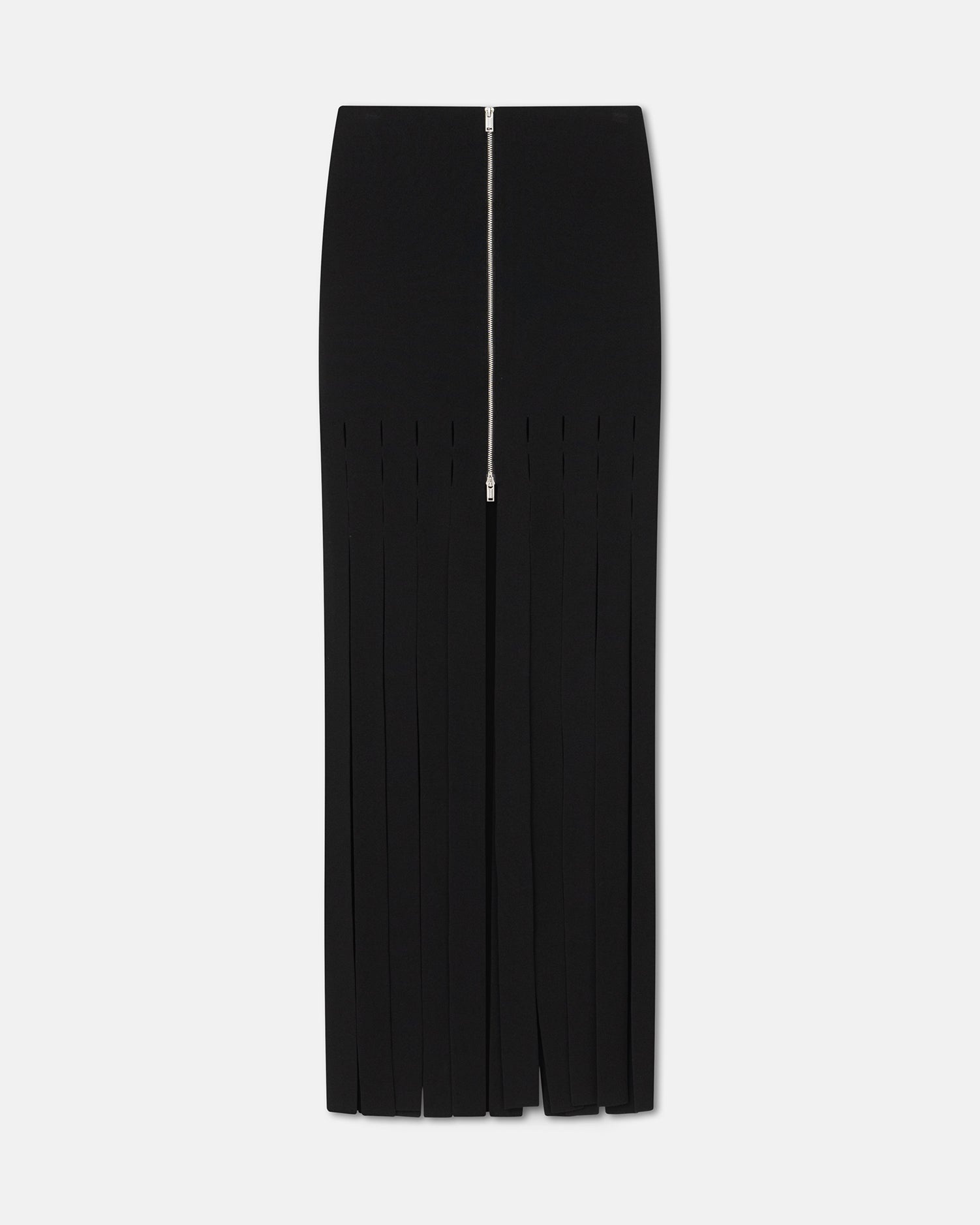 The Triana skirt shows how we use fabric to elevate understated silhouettes. Sitting high on the waist with a zip front, it is finished with a wave of fringing that pools to the floor. Fit Tailored to be fitting against the body. Model is 175 cm (5'9'') and wears a size S. Materials and Care Shell: 52% Viscose 46% Polyamide 2% Elastane Hand wash, do not bleach, do not tumble dry, iron low heat (110°), gentle dry clean any solvent except trichloroethylene, do not wring handle with care and wash less to ensure garment lifespan. repair or resell to support circular fashion.