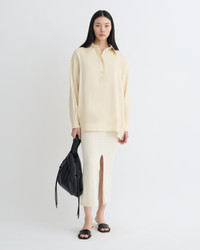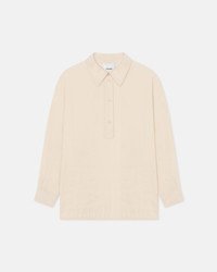 The Linka shirt is cut from glass poplin for an ultra-oversized fit, with an open collar and dropped shoulder seams to enhance the effect. The oat tone subtle calls out our love of utilitarian aesthetics. Fit Intentionally designed for an oversized look. Materials and Care Shell: 74% Viscose 26% Polyester Machine wash warm (30°) permanent press, do not bleach, do not tumble dry, iron low heat (110°), dry clean any solvent except trichloroethylene, do not wring Handle with care and wash less to ensure garment lifespan. Repair or resell to support circular fashion.