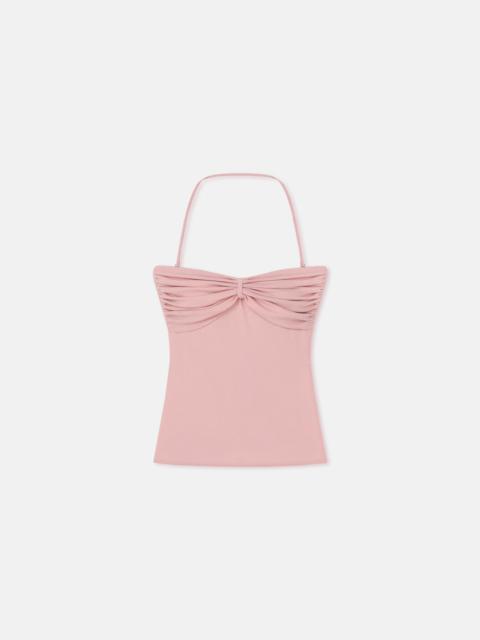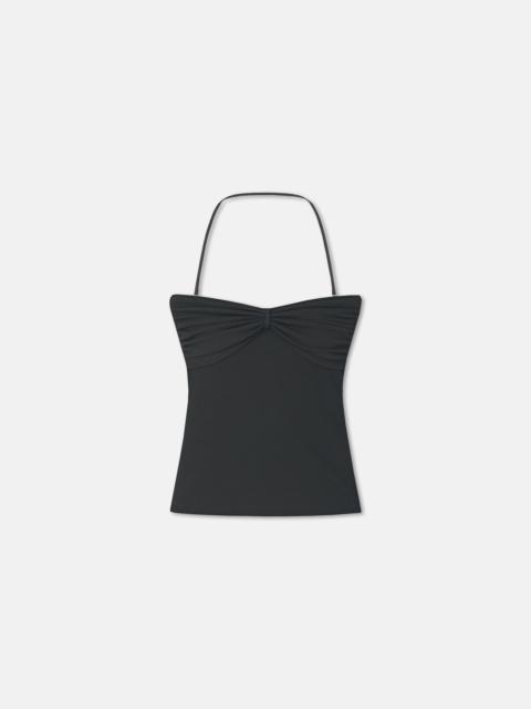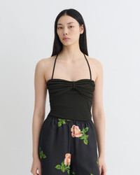 We explore exploring minimalist twists and folds for Pre-Fall 2025. The Rissa top is made from our signature mesh jersey with a halter neck silhouette and ruched bust detailing. Fit Tailored to be fitting against the body. Materials and Care Shell: 100% Polyester Machine wash warm (30°), do not bleach, do not tumble dry, iron low heat (110°), gentle dry clean any solvent except trichloroethylene Handle with care and wash less to ensure garment lifespan. Repair or resell to support circular fashion.