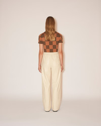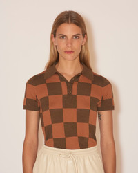 HATTI - Fine merino knitted polo - Hazelnut/cinnamon check
