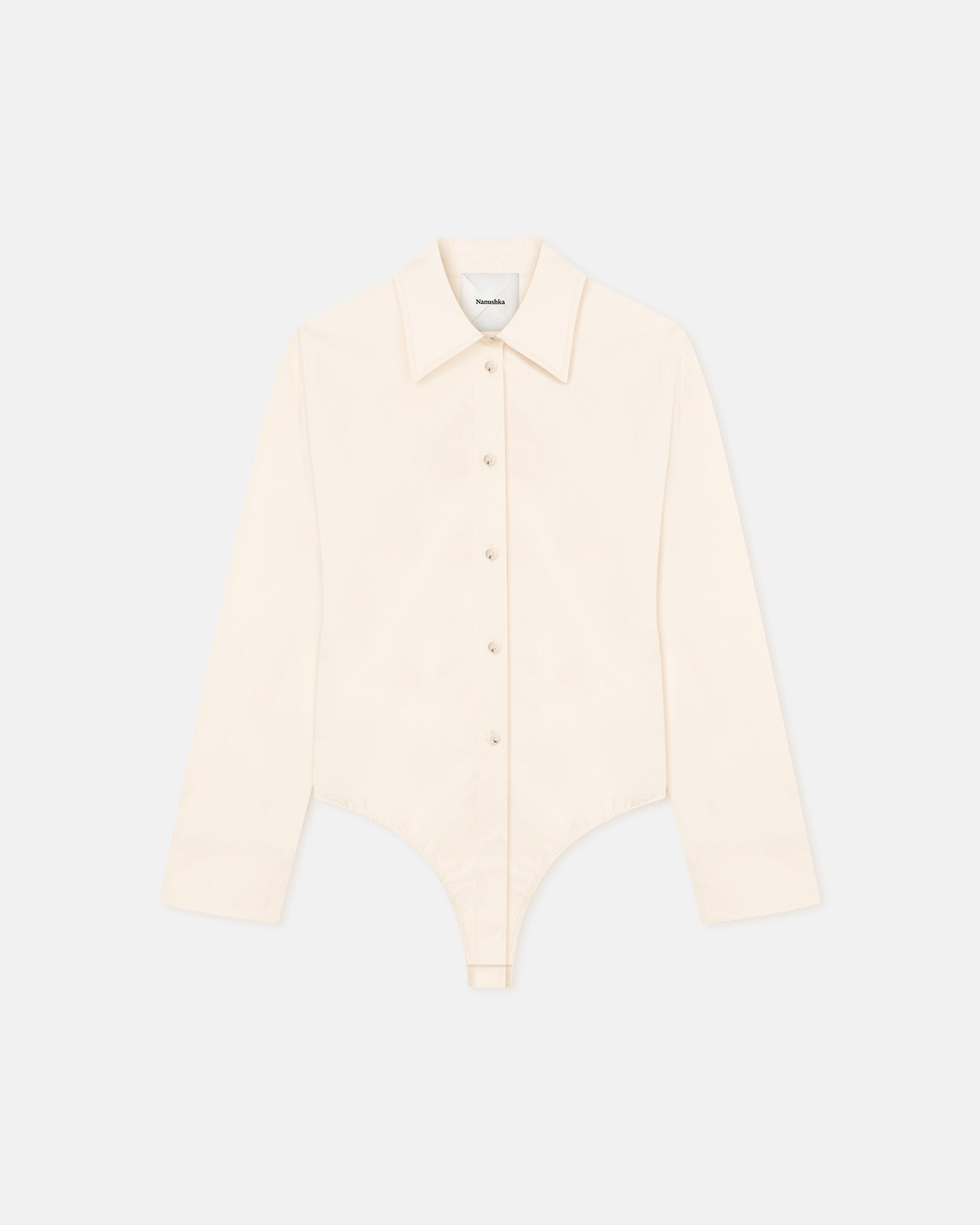 The Aliska bodysuit is a key part of an elegant, modern wardrobe. It’s made from heavy poplin for a classic shirt silhouette and paneled with double-jersey briefs for a neat tuck. Materials and Care Shell1: 100% Cotton, Shell2: 67% Viscose 28% Polyamide 5% Elastane Hand wash, do not bleach, do not tumble dry, iron low heat (110°), dry clean any solvent except trichloroethylene, do not wring. Handle with care and wash less to ensure garment lifespan. Repair or resell to support circular fashion.