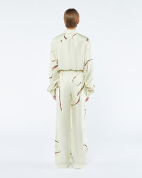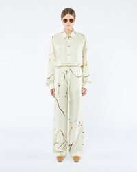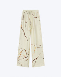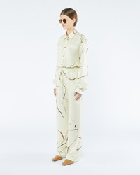 The Jarine pants are cut from twill silk that pools elegantly at the ankles from the high waist. They’re decorated with an expressive pattern inspired by the art of line drawing. Shell 100% SILK