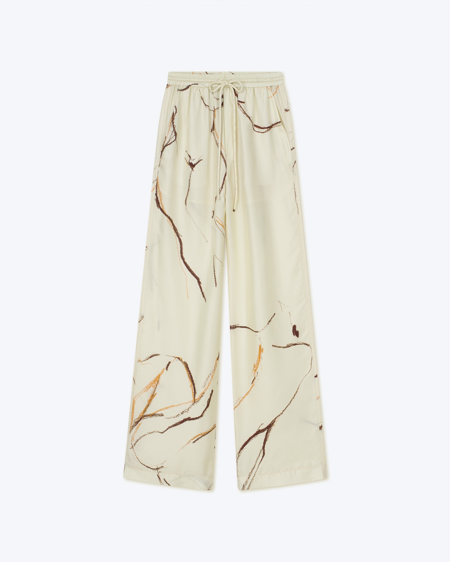 JARINE - Printed twill silk pants - Line drawing