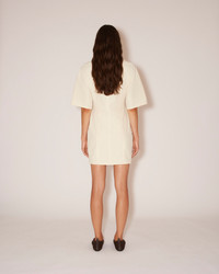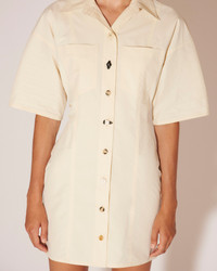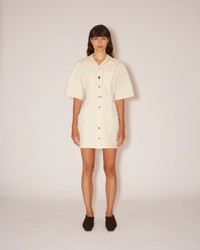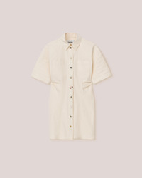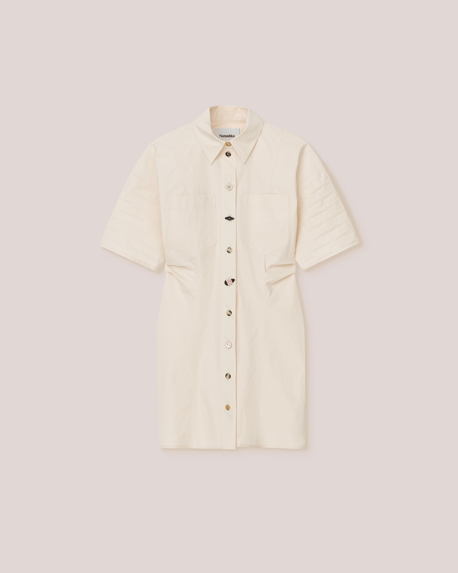 Oversized sleeves and a streamlined cut combine to allow this shirt a rather unique silhouette. Buttons are varied in shape and color. The Jayla is a conceptual classic made from a lightweight shirting fabric. Model is 176 cm (5'9") tall and wears a size S. Body 72% Recycled Nylon; Body 28% Cotton; Button 100% Ceramics