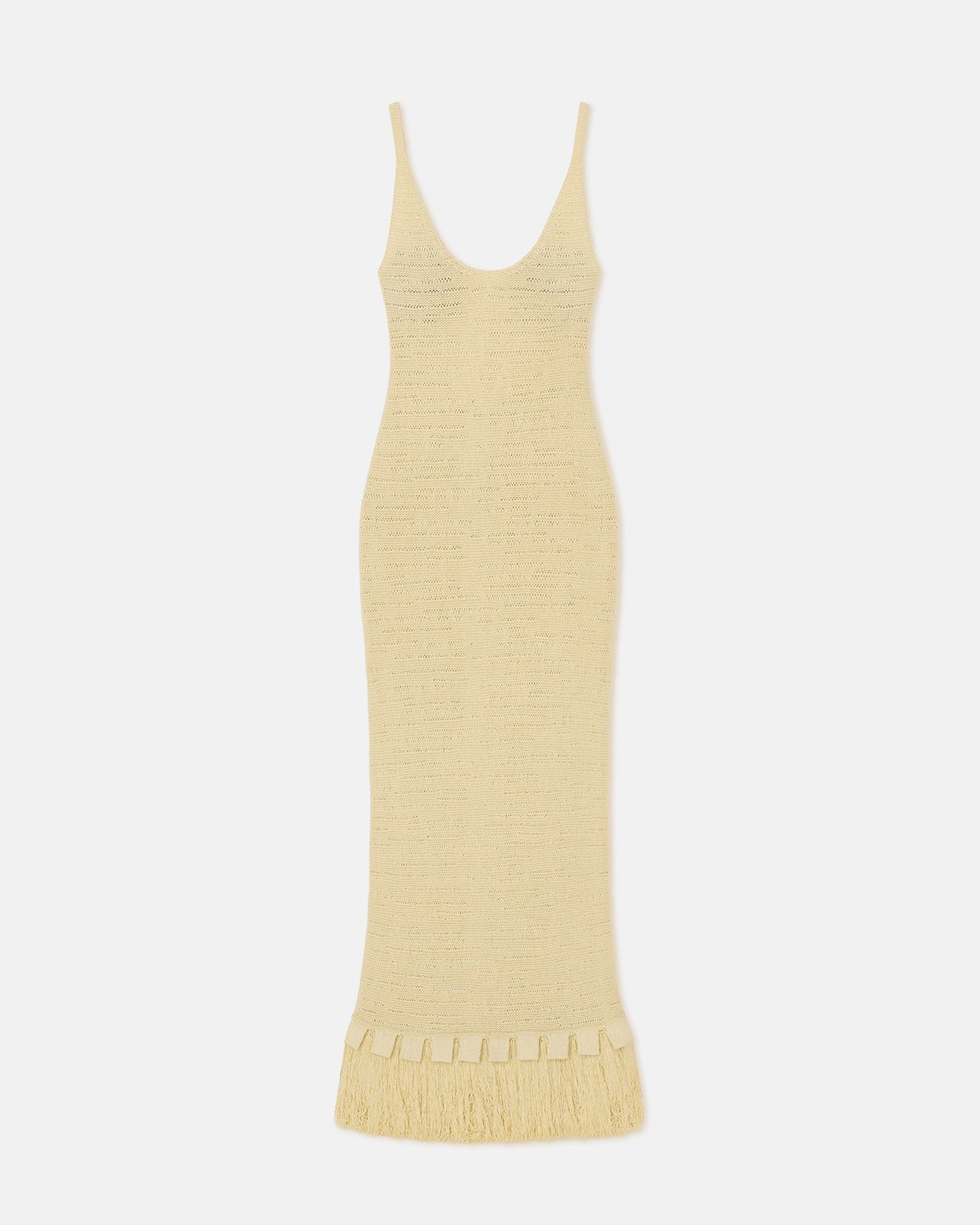 We celebrate nomadic texture and tactility for Spring/ Summer 2025. The Alona dress is knitted from a soft cotton blend for a close fit through the body and finished with a fringed hem – it swishes beautifully with every step. Fit Tailored to be fitting against the body. Materials and Care Shell: 72% Cotton 27% Polyamide Hand wash, do not bleach, do not tumble dry, iron low heat (110°), dry clean any solvent except trichloroethylene, dry flat. Handle with care and wash less to ensure garment lifespan. Repair or resell to support circular fashion.