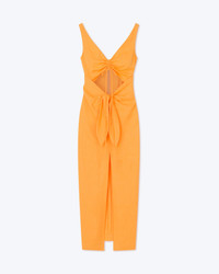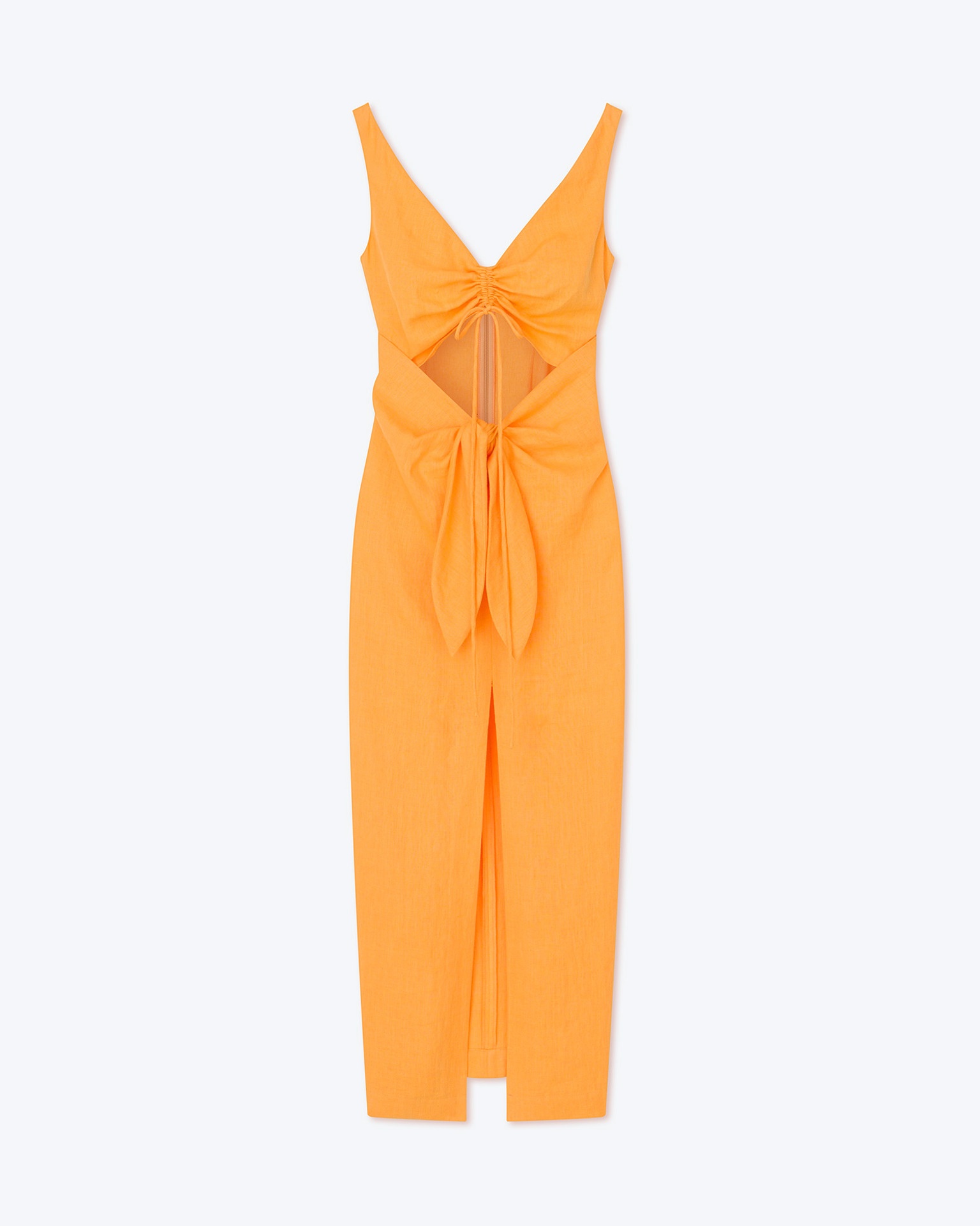 Tactile linen in a rustic oat hue brings a laid-back feel to the Kubra dress. The silhouette, however, is wholly contemporary: note the ruched cutaway detailing and sleek tie fastenings. Shell 100% LINEN