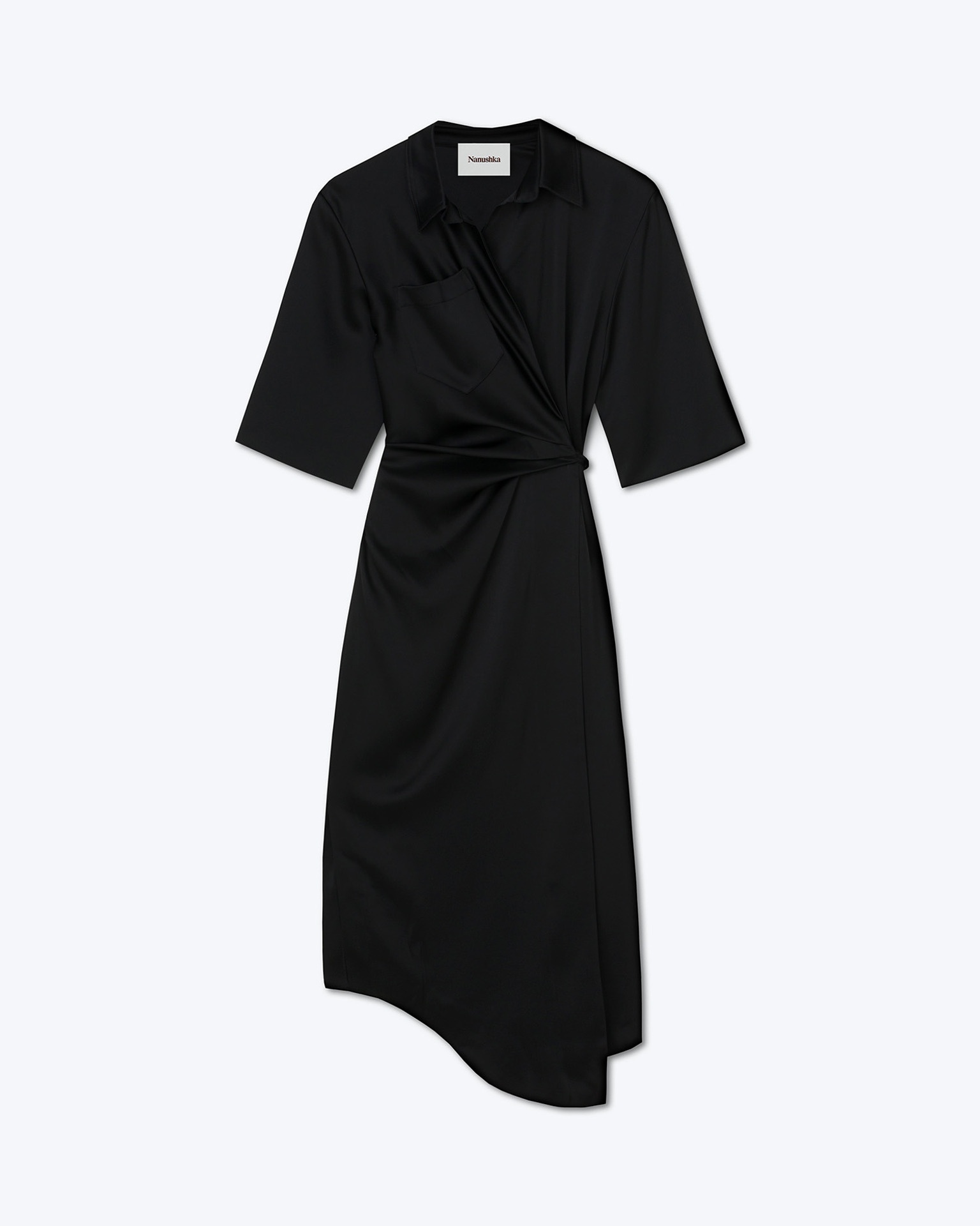 The Lais dress is at the heart of the Nanushka design philosophy, prized for its refined versatility and elegant functionality. Made from signature FSC-certified slip satin for a lightweight, lustrous finish, it is finished with Western-inspired detailing and a flattering tie waist. Fit Designed to be intentionally oversized. Take your usual size for the oversized effect, or take a size down for a more regular fit. Model is 177 cm (5'8") and wears size S. Materials and Care Body: 78% Triacetate; Body 22% Polyester Hand wash, do not bleach, do not tumble dry, iron low heat (110), dry clean any solvent except trichloroethylene