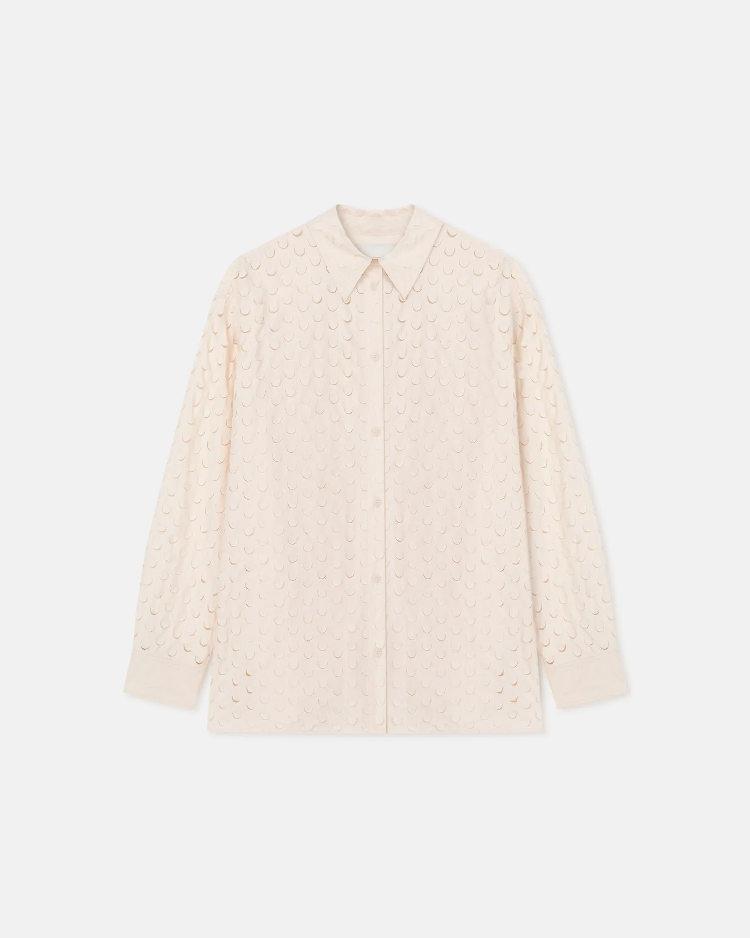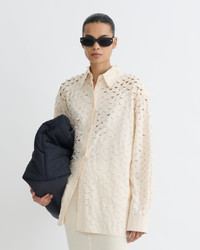 The Aphea shirt is made from creme heavy poplin that's laser-cut all over. Lightweight and oversized, it's the perfect counterpoint to sleek separates. Fit Intentionally designed for an oversized look. Materials and Care Shell: 100% Cotton Machine wash warm (30°) very mild, permanent press, do not bleach, do not tumble dry, iron low heat (110°), dry clean any solvent except trichloroethylene, do not wring Handle with care and wash less to ensure garment lifespan. Repair or resell to support circular fashion.