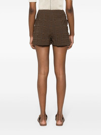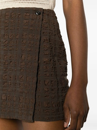 layered seersucker shorts Highlights - Brown - Recycled polyester blend - Stretch-design - Seersucker texture - Layered design - Concealed front zip fastening - Unlined Imported Composition Recycled Polyester 64%, Polyamide 32%, Elastane 4% SIZE & FIT Model measurements Height 5 ft 11 in(1.8 m) Bust/Chest 31.49 in(80 cm) Hips 36.61 in(93 cm) Waist 24.4 in(62 cm) FittingInformation Designed for a slim fit that sits just away from the body offering a close yet comfortable fit Made from a lightweight stretch fabric, this piece offers elasticity and flexibility when worn This piece fits true to size – take your usual size Washing instructions Machine Wash