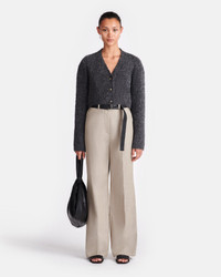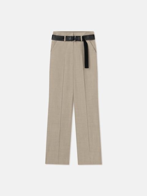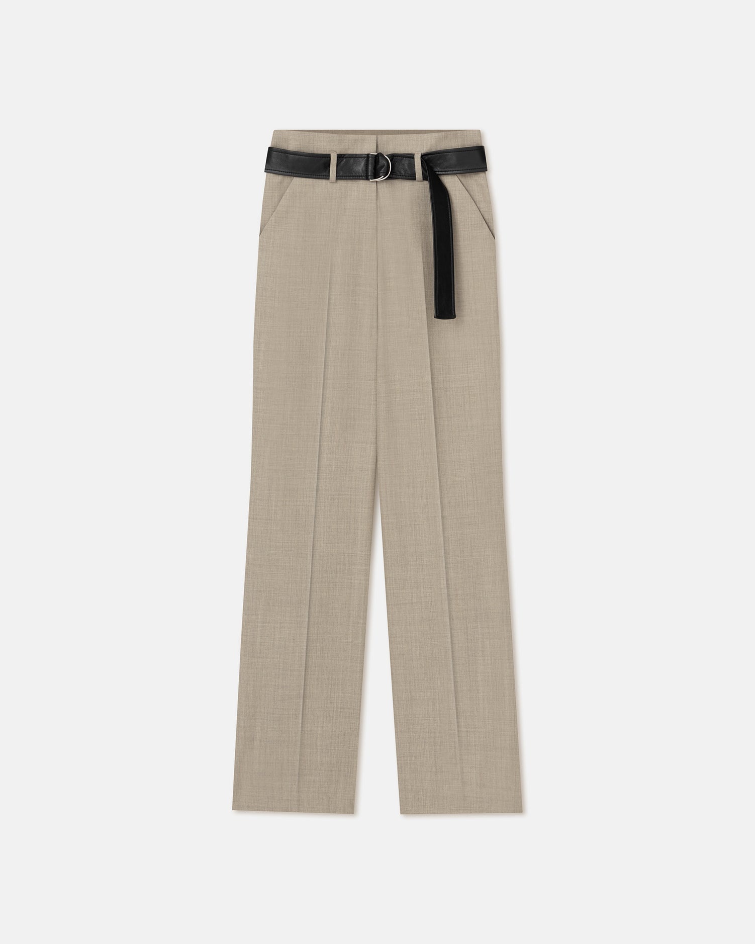 The Ulani pants have a relaxed, androgynous feel that's timelessly chic. Tailored from twill suiting, they have a high-rise waist and straight legs with pressed creases to emphasize their fluid shape. The regenerated leather belt keeps things sharp. Fit Standard fit, matches usual sizing. Model is 175 cm (5'9'') and wears a size S Materials and Care Shell: Shell 1: 100% Wool Shell 2: Base: 100% Polyester Coating: Polyurethane Back: Bonded Leather Middle: 80% Polyester 20% Polyamide Do not wash, do not bleach, do not tumble dry, iron low heat (110°), gentle dry clean any solvent except trichloroethylene handle with care to ensure garment lifespan. repair or resell to support circular fashion.