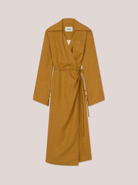 With its deconstructed twisted waist, the Marto is defined by Nanushka’s signature new season wrap silhouette. Interpreted in a short thigh-skimming guise, the mini dress is cut from black OKOBOR™ alt-leather and features a wide open neckline, long sleeves and button front for functionality. OKOBOR™ is exclusive to Nanushka. Our new alternative to leather, with 100% recycled backing and a more responsible composition. Previously referred to as vegan leather, alt-leather is free from the use of animal skin or derivatives. Body 56% RECYCLED POLYESTER Body 44% POLYURETHANE Lining 56% ACETATE Lining 44% VISCOSE