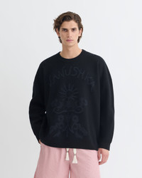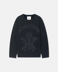 The Oswin sweater is jacquard-woven with the Nanushka logo and signature artful motifs in soft terry. It is knitted from merino wool for a louche, oversized fit. Fit Intentionally designed for an oversized look. Materials and Care Shell: Shell1 75% Cotton 25% Nylon Shell2 100% Merino Wool Hand wash cold, do not bleach, do not tumble dry, iron low heat (110°), dry clean any solvent except trichloroethylene, dry flat Handle with care and wash less to ensure garment lifespan. Repair or resell to support circular fashion.
