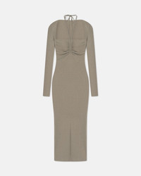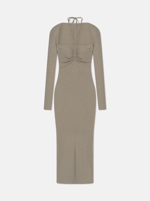 Nanushka’s Aponi Dress merges structure and fluidity. Crafted from soft mesh jersey, its wide shoulders and ruched bodice create a sculptural elegance. Part of the Fall-Winter 25 collection, Aponi expresses strength and sensuality in equal measure, an emblem of modern femininity grounded in effortless elegance. Fit Standard fit, matches usual sizing Model is 180 cm (5'11'') and wears a size S. Materials and Care Shell: 100% POLYESTER Machine wash warm (30°), Do not bleach, Do not tumble dry, Iron low heat (110°), Gentle Dry clean any solvent except Trichloroethylene