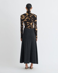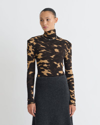 The Nayeli Top from Nanushka reimagines a classic turtleneck through the Fall-Winter 25 Grow collection’s lens of transformation. Crafted from delicate mesh jersey, its grown-on neckline and wide shoulders sculpt a modern, confident silhouette. Rendered in midnight mocha apricot, it offers a striking yet lightweight layer, designed to empower and evolve with the wearer’s shifting sense of self Fit Standard fit, matches usual sizing Model is 175 cm (5'9'') and wears a size S. Materials and Care Shell: 100% POLYESTER Machine wash warm (30°), Do not bleach, Do not tumble dry, Iron low heat (110°), Gentle Dry clean any solvent except Trichloroethylene