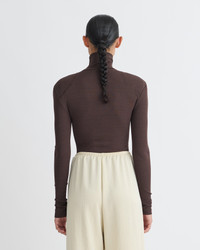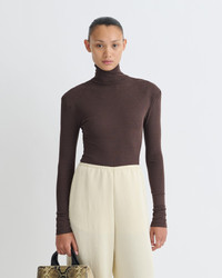 The Nayeli Top from is a reimagined classic turtleneck through the Fall-Winter 25 Grow collection’s lens of transformation. Crafted from delicate mesh jersey, its grown-on neckline and wide shoulders sculpt a modern, confident silhouette. Rendered in midnight mocha apricot, it offers a striking yet lightweight layer, designed to empower and evolve with the wearer’s shifting sense of self Fit Standard fit, matches usual sizing Model is 175 cm (5'9'') and wears a size S. Materials and Care Shell: 100% POLYESTER Machine wash warm (30°), Do not bleach, Do not tumble dry, Iron low heat (110°), Gentle Dry clean any solvent except Trichloroethylene