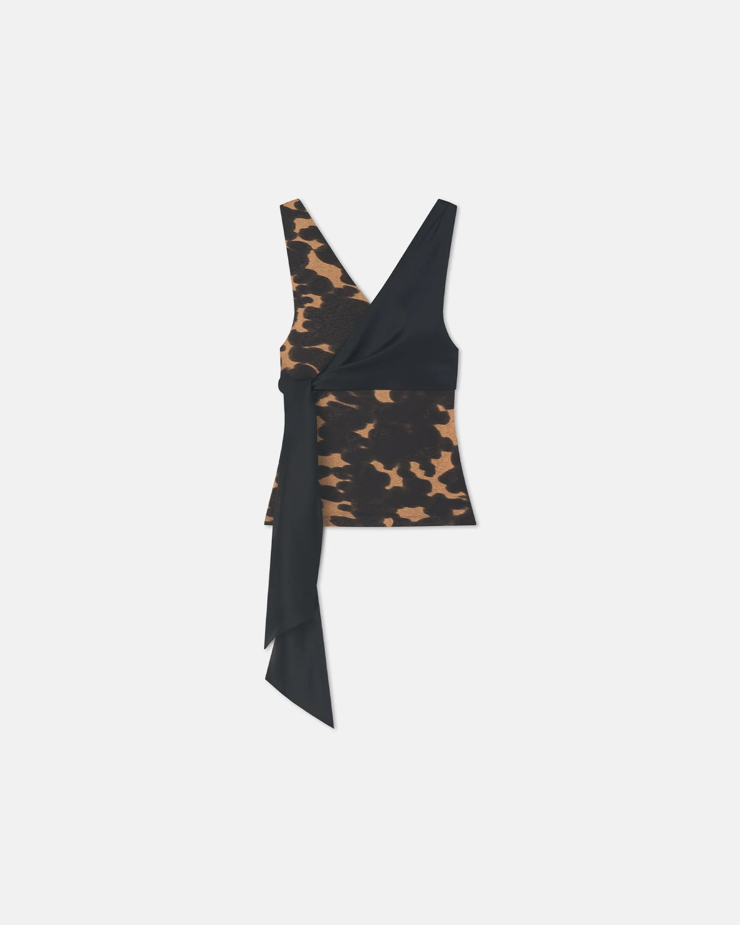 Our Neca Top explores contrast and fluidity which is core to the ethos of our Fall-Winter 25 collection. Crafted from mesh jersey and with draped slip satin panels, this sleeveless top combines precision and movement. The tie detail defines the top's silhouette, while the dark oak and black palette add a contemporary elegance Fit Tailored to be fitting against the body. Materials and Care Shell 1: 100% POLYESTER Shell 2: 74% ACETATE 26% POLYESTER Machine wash warm (30°), Do not bleach, Do not tumble dry, Iron low heat (110°), Gentle Dry clean any solvent except Trichloroethylene