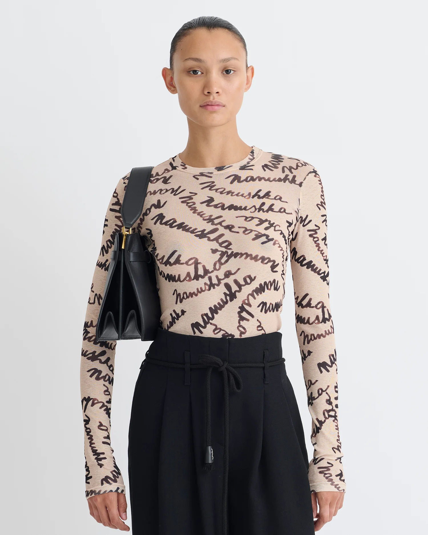 The Lymee top is part of the RECRAFTED capsule, showcasing our commitment to responsible consumption. Upcycled from our deadstock fabric library, it’s crafted from mesh jersey that’s decorated with our Scribble Logo print in creme. A versatile wardrobe staple, it’s made for a streamlined fit. Materials and Care Shell: 100% Recycled Polyester Machine wash warm (30°) permanent press, do not bleach, do not tumble dry, iron low heat (110°), do not dry clean, do not wring Handle with care and wash less to ensure garment lifespan. Repair or resell to support circular fashion.