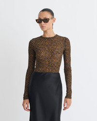 The Lymee top is part of the RECRAFTED capsule, showcasing our commitment to responsible consumption. It’s crafted from ocelot-print mesh jersey upcycled from our deadstock fabric library. A versatile wardrobe staple, it’s made for a streamlined fit. Materials and Care Shell: 100% Recycled Polyester Machine wash warm (30°) permanent press, do not bleach, do not tumble dry, iron low heat (110°), dry clean any solvent except trichloroethylene, do not wring Handle with care and wash less to ensure garment lifespan. Repair or resell to support circular fashion.