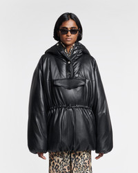 The Osana puffer jacket is made from our exclusive OKOBOR™ and lined in smooth satin. It has a snap-fastening placket, front flap pocket and self-tie waist to cinch the voluminous silhouette. A high-neck collar and hood ensures added functionality. Fit Oversized: Designed to be intentionally oversized. Take your usual size for the oversized effect, or take a size down for a more regular fit. Oversized pullover jacket Front snap button closure Oversized decorative pocket in the front Two side pockets String belt adjuster on the waist Model is 180 cm (5'11'') and wears a size S. Materials and Care Shell: 100% Polyester (Recycled), Coating: Polyurethane Do not wash, do not bleach, do not tumble dry, do not iron, dry clean any solvent except trichloroethylene. this product is made from a delicate fabric and has a special finish, the dark colour of this product may transfer onto light surfaces and cause damage, please store separately and handle with care..handle with care to ensure garment lifespan. repair or resell to support circular fashion.
