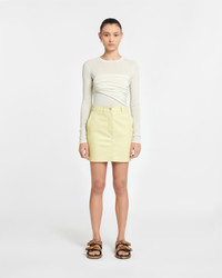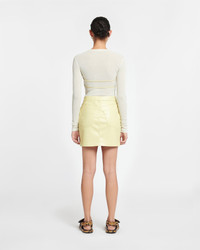 The Miray skirt is made from our exclusive Okobor™ alt-leather – the lustrous finish heightens the vividness of the lemongrass tone. It sits high on the waist with a five-pocket design and belt loops, before falling to a mid-thigh length. Fit Designed to fit sleekly against the body. Take your usual size for a bodycon fit, or size up for a more relaxed effect. Model is 175 cm (5'9") and wears size S. Materials and Care Shell: Coating: Polyurethane Base: 100% Polyester Lining: 100% Polyester Machine wash warm (30°), Do not bleach, Do not tumble dry, Iron low heat (110°), Dry clean any solvent except trichloroethylene.This product is made from a delicate fabric and has a special finish, Dark colours may transfer onto the light surface of this product and cause damage, Please handle this product with care - store separately and keep away from dark colour