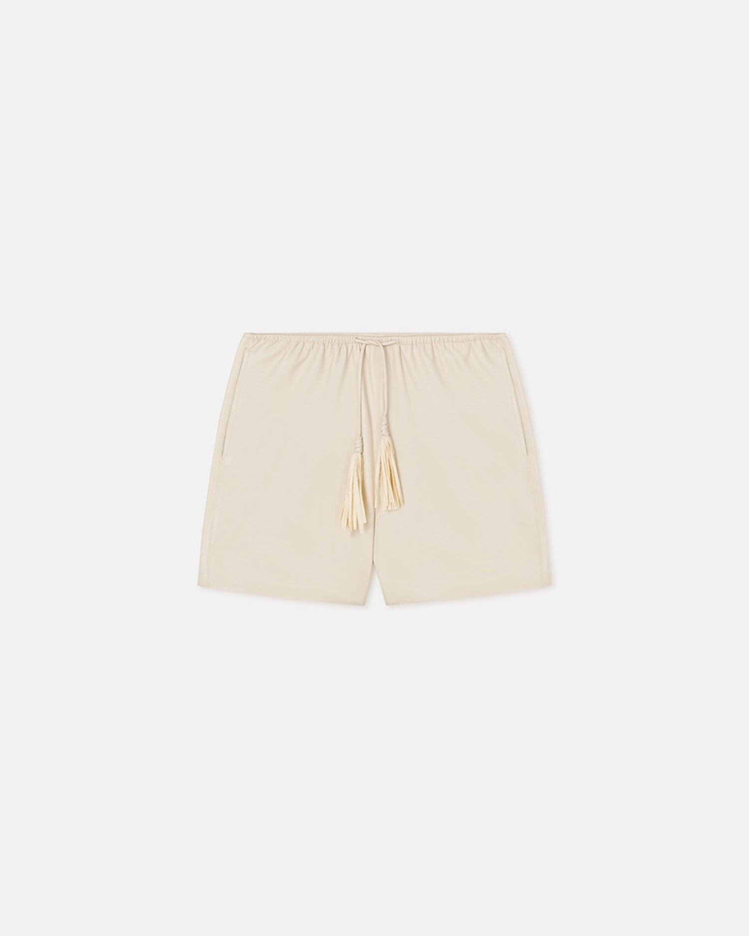 The Aniela shorts are crafted from our exclusive OKOBOR™ alt-leather fabric. They sit high on the waist with nomadic-inspired tasselled drawstring ties for flexibility. Fit Standard fit, matches usual sizing. Materials and Care Shell: Base: 100% Polyester (Recycled), Coating: 100% Polyurethane, Trimmings: 72% Nylon (Recycled) 28% Cotton Do not wash, do not bleach, do not tumble dry, do not iron, dry clean any solvent except trichloroethylene. Handle with care to ensure garment lifespan. Repair or resell to support circular fashion. This product is made from a delicate fabric and has a special finish, dark colors may transfer onto the light surface of this product and cause damage. Please handle this product with care - store separately and keep away from dark colors.