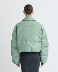 The Juel Jacket is a signature outerwear piece for this season with its sculptural, cropped silhouette and supple Okobor™ alt leather fabrication. In a beautiful, deep sage colour it's a lightweight, statement layer to carry you through the winter. Fit Standard fit, matches usual sizing Model is 180 cm (5'11'') and wears a size S. Materials and Care Shell: COATING: POLYURETHANE BASE: 100% POLYESTER Lining: 100% VISCOSE Do not wash Do not bleach Do not tumble dry Do not iron Gentle Dry clean any solvent except Trichloroethylene