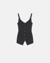 The Cinda top looks deceptively simple from the front – a sharply tailored silhouette with button fastenings and flap pockets at the waist – but turns to reveal an open back for something uniquely Nanushka. Fit Standard fit, matches usual sizing. Materials and Care Shell: 55% Polyester 45% Virgin Wool Lining: 100% Cupro Do not wash, do not bleach, do not tumble dry, iron low heat (110°), gentle dry clean any solvent except trichloroethylene. Handle with care to ensure garment lifespan. Repair or resell to support circular fashion.
