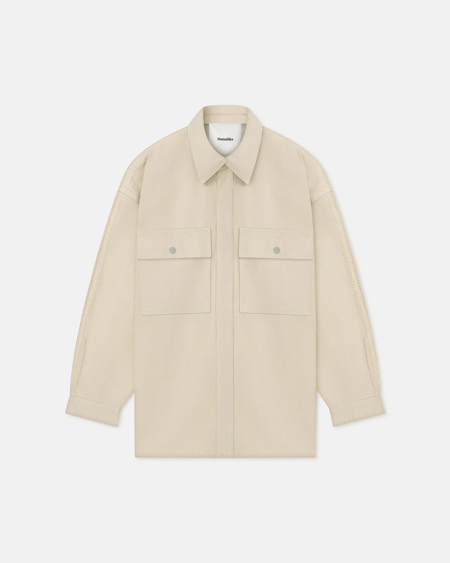 Made from beige denim, the Marianna shirt has a distinctly utilitarian feel. It’s finished with crochet trims, oversized silhouette and dropped shoulder seams. Fit Intentionally designed for an oversized look. Materials and Care Shell: 100% Cotton Hand wash, do not bleach, do not tumble dry, iron low heat (110°), gentle dry clean any solvent except trichloroethylene Handle with care and wash less to ensure garment lifespan. Repair or resell to support circular fashion.