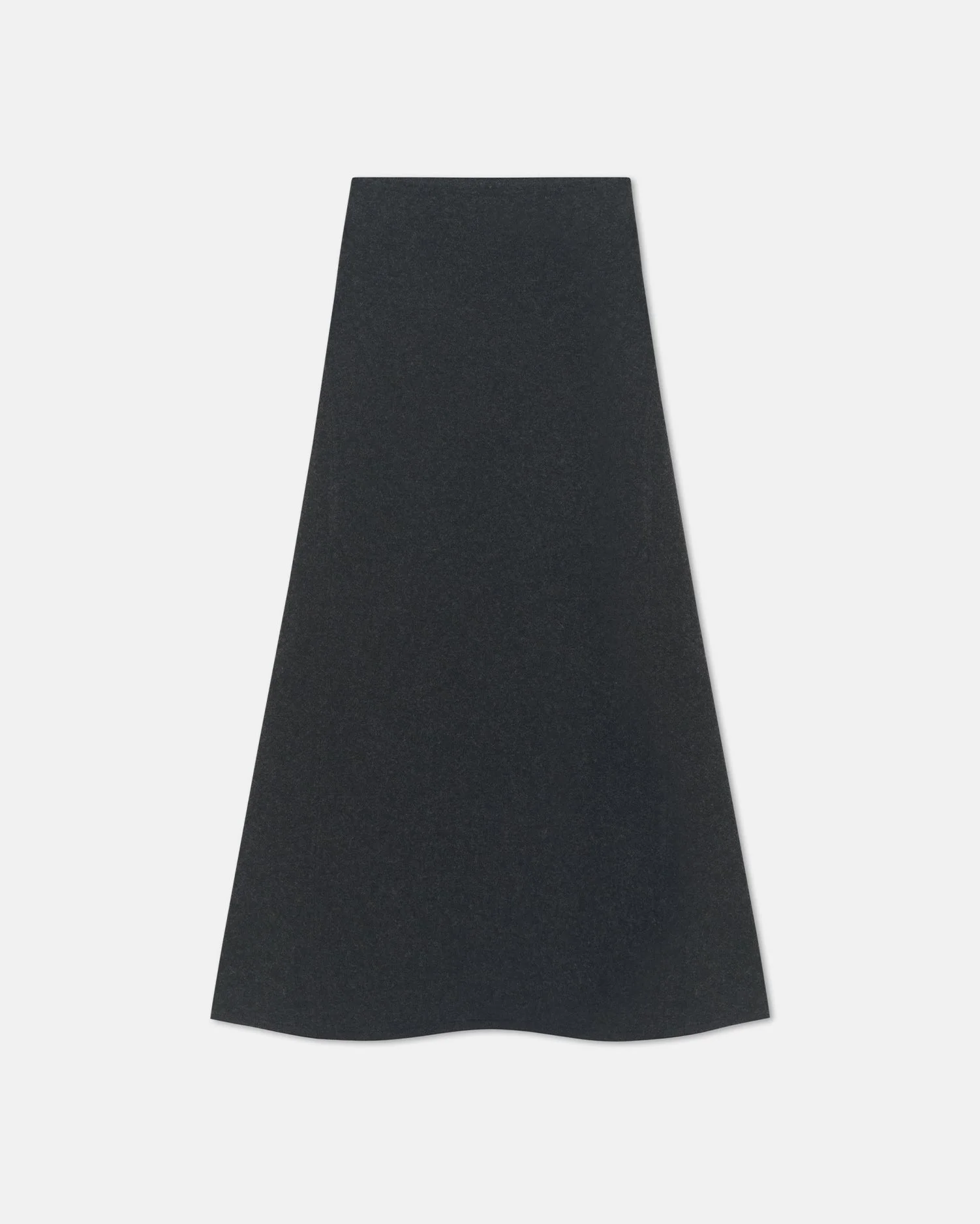 This a-line midi skirt falls gently from the waist and in a charcoal overwashed merino. it is an elevated wardrobe piece for modern dressing. Fit Standard fit, matches usual sizing Model is 180 cm (5'11'') and wears a size S. Materials and Care Shell: 100% MERINO WOOL Hand wash cold, Do not bleach, Do not tumble dry, Iron low heat (110°), Dry clean any solvent except trichloroethylene, Dry flat