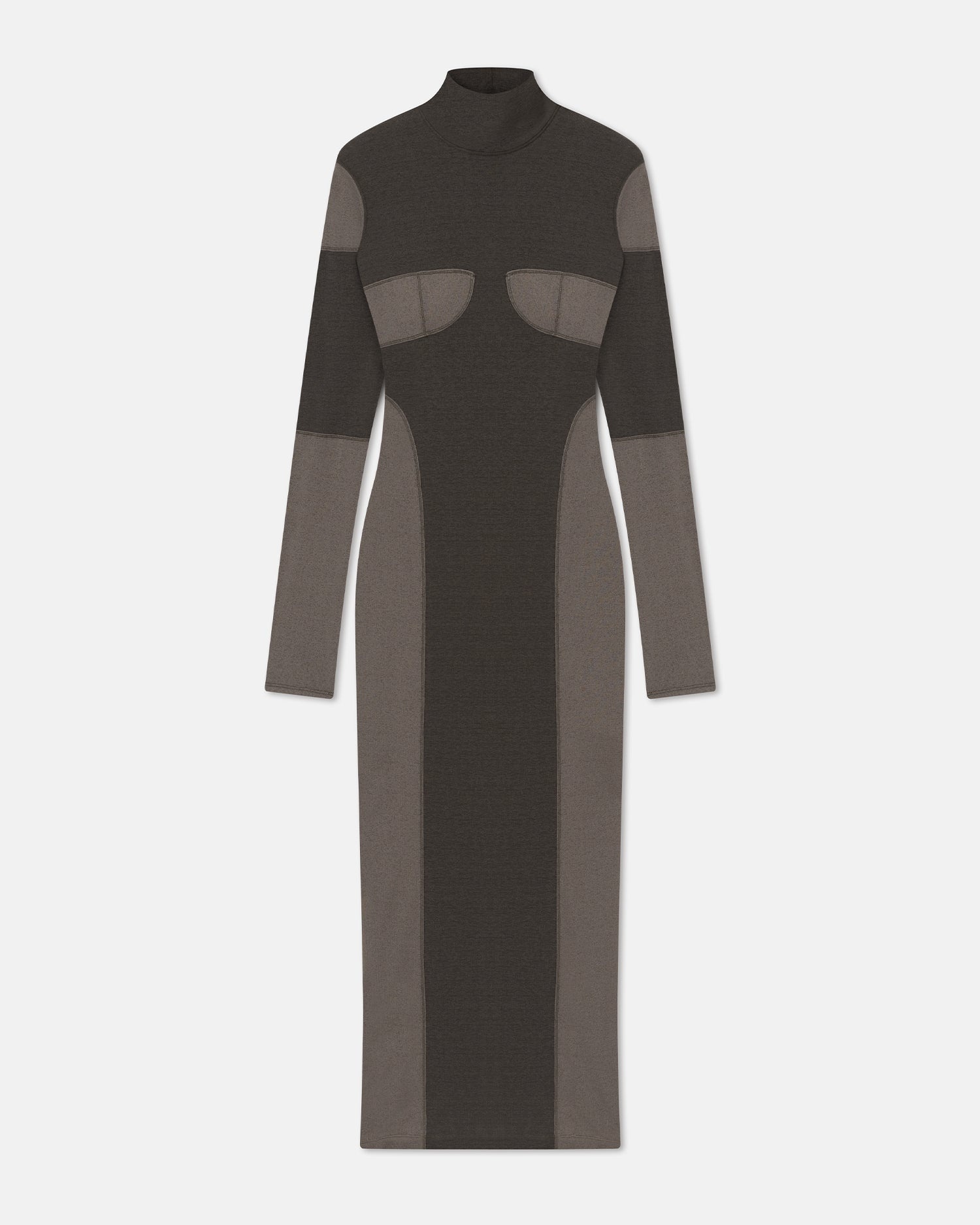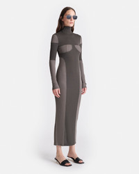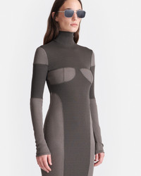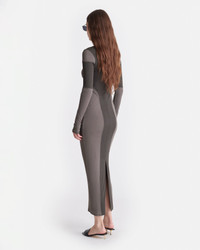 The Imelda dress is made from our signature form-fitting mesh jersey in a patchwork of dark-moss and fossil-grey tones – each panel is strategically placed to highlight the female form. Model is 175 cm (5'9") and wears size S. Materials and Care Shell: 100% Polyester (Recycled) Machine wash warm (30°), do not bleach, do not tumble dry, iron low heat (110°), gentle dry clean any solvent except trichloroethylene. Handle with care and wash less to ensure garment lifespan. Repair or resell to support circular fashion.