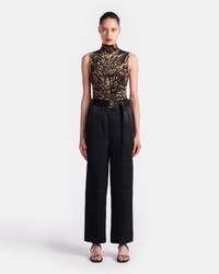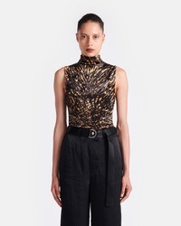 The Annyka top has an understated silhouette – think mock neck and figure-hugging fit – that’s enhanced by the fur stroke animal print. It’s made from crushed velvet for a hyper-textured finish. Fit Tailored to be fitting against the body. Model is 175 cm (5'9'') and wears a size S. Materials and Care Shell: 90% Polyester 10% Elastane Hand wash cold, do not bleach, do not tumble dry, iron low heat (110°), dry clean any solvent except trichloroethylene handle with care and wash less to ensure garment lifespan. repair or resell to support circular fashion.