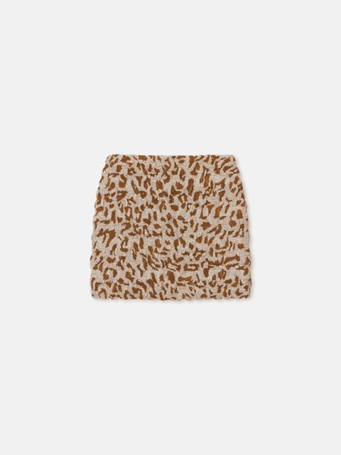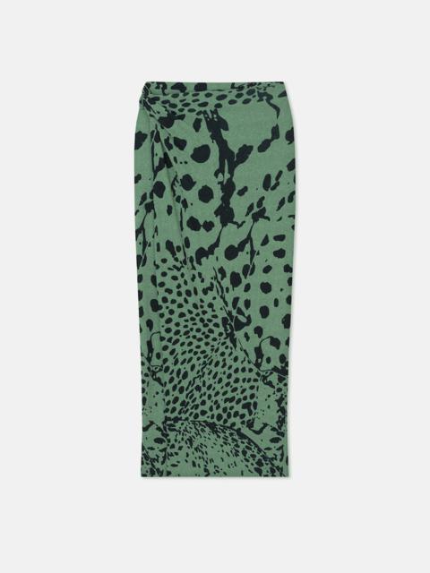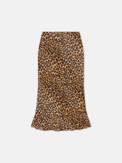 The Zarina skirt is inspired by classic slip styles, with a clean-lined, fluid shape. Made from our 60s pleat fabric in an ocelot pattern, it sits high on the waist before falling to mid-calf. Fit Standard fit, matches usual sizing. Materials and Care Shell: 99% Viscose 1% Elastane Machine wash warm (30°) permanent press, do not bleach, do not tumble dry, iron low heat (110°), dry clean any solvent except trichloroethylene, dry flat, do not wring. Handle with care and wash less to ensure garment lifespan. Repair or resell to support circular fashion.