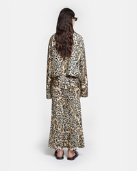 The Sabeen skirt is made from high-shine silk twill that hangs beautifully in a subtle fluted midi-length silhouette. Sitting high on the waist and decorated in leopard print, it is inspired by 90s minimalist aesthetics. Fit Regular fit, true to size. Maxi lenght skirt Twill silk material Zip closure on the side Model is 177 cm (5'9'') and wears a size S. Materials and Care Shell: 100% Silk Do not wash, do not bleach, do not tumble dry, do not iron, dry clean any solvent except trichloroethylene.handle with care to ensure garment lifespan. repair or resell to support circular fashion.