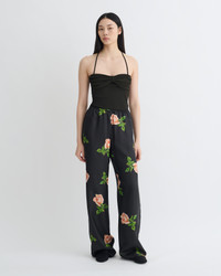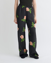 The Arvenn pants are decorated with vibrant rose motifs that are inspired by vintage Hungarian postage stamps. They are easy to wear thanks to fluid silk twill, elasticated waist and relaxed legs. Fit Standard fit, matches usual sizing. Materials and Care Shell: 100% Silk Do not wash, do not bleach, do not tumble dry, do not iron, dry clean any solvent except trichloroethylene Handle with care to ensure garment lifespan. Repair or resell to support circular fashion.