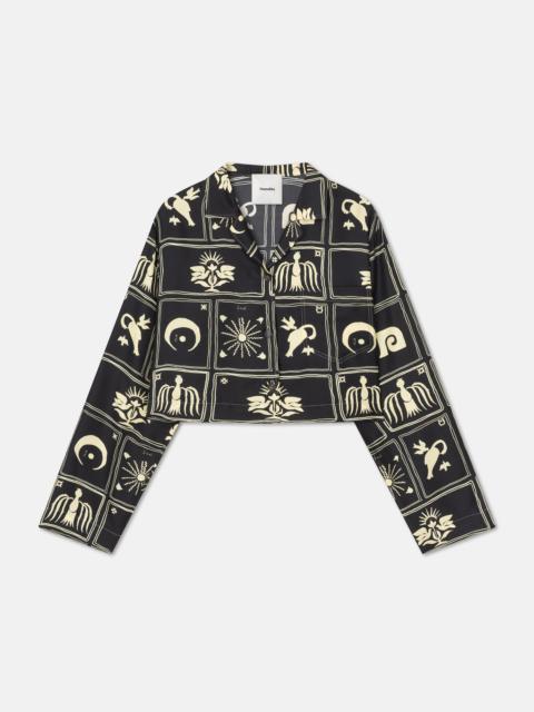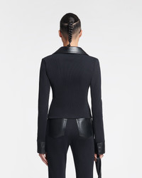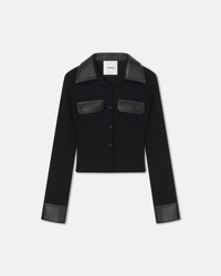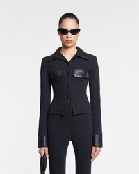 Contemporary detailing is our brand signature. The Rasima shirt is made from super soft ribbed jersey for a close fit and finished with tonal regenerated-leather trims. Fit Close to the body: Designed to fit sleekly against the body. Fitted shirt Ribbed material Wide Collars Regenerated leather details (pocket flaps, collars,cuffs) Button closure Model is 175 cm (5'9'') and wears a size S. Materials and Care Shell: Shell 1: 98% Cotton 2% Elastane 2: Polyurethane Base: 100% Polyester Back: Bonded Leather Middle: 80% Polyester 20% Polyamide Shell Do not wash, do not bleach, do not tumble dry, do not iron, gentle dry clean any solvent except trichloroethylene.handle with care to ensure garment lifespan. repair or resell to support circular fashion.